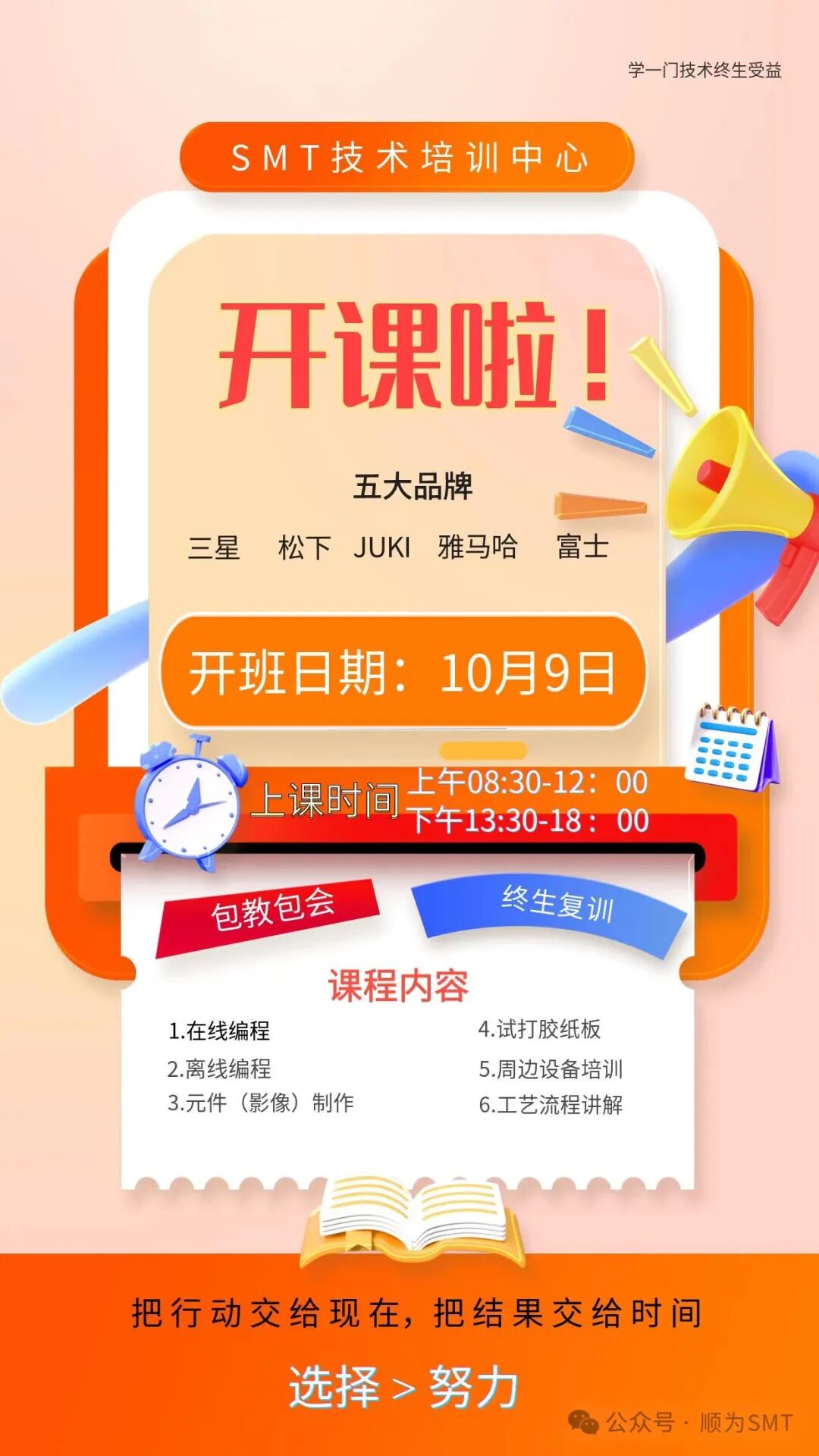 ?課程內容包含:選擇一款品牌貼片機;學在線編程,離線編程,元件(影像)制作,打膠紙板。包含周邊設備培訓:(印刷機,SPI,AOI)工藝流程講解,學員就業指導。